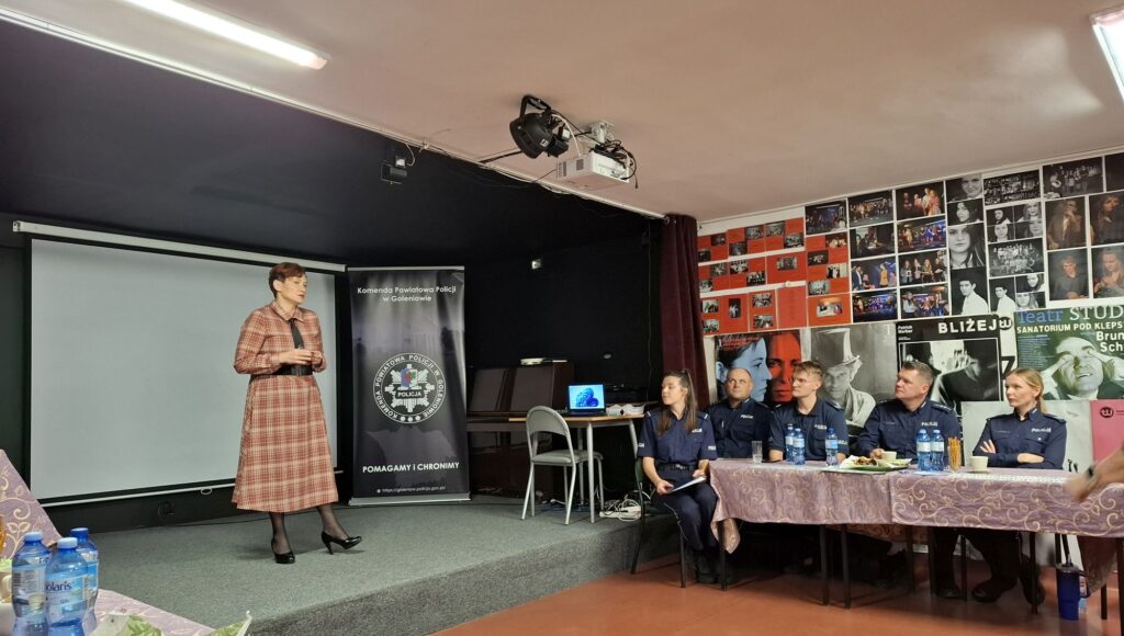 Pani Wioletta Witkowska-Kowalczyk podkreśliła, że każde słowo ma znaczenie, a sąd coraz częściej spotyka się z przypadkami przemocy psychicznej wśród nieletnich, sprawca jednak zawsze ponosi konsekwencje swych czynów. Pan Burmistrz Michał Wiatr zwrócił uwagę na rolę samorządu w wspieraniu działań edukacyjnych, a starszy aspirant Karol Kiziuk mówił o codziennej pracy Policji w zakresie profilaktyki i reagowania na zgłoszenia związane z hejtem. Spotkanie cieszyło się dużym zainteresowaniem – uczniowie aktywnie uczestniczyli w dyskusji, dzielili się swoimi doświadczeniami i zadawali pytania. To pokazuje, że młodzież nie tylko potrzebuje wiedzy, ale też przestrzeni do rozmowy. Ważne jest aby przeciwdziałać zjawiskom, które niszczą relacje, poczucie bezpieczeństwa i zdrowie psychiczne młodych ludzi.