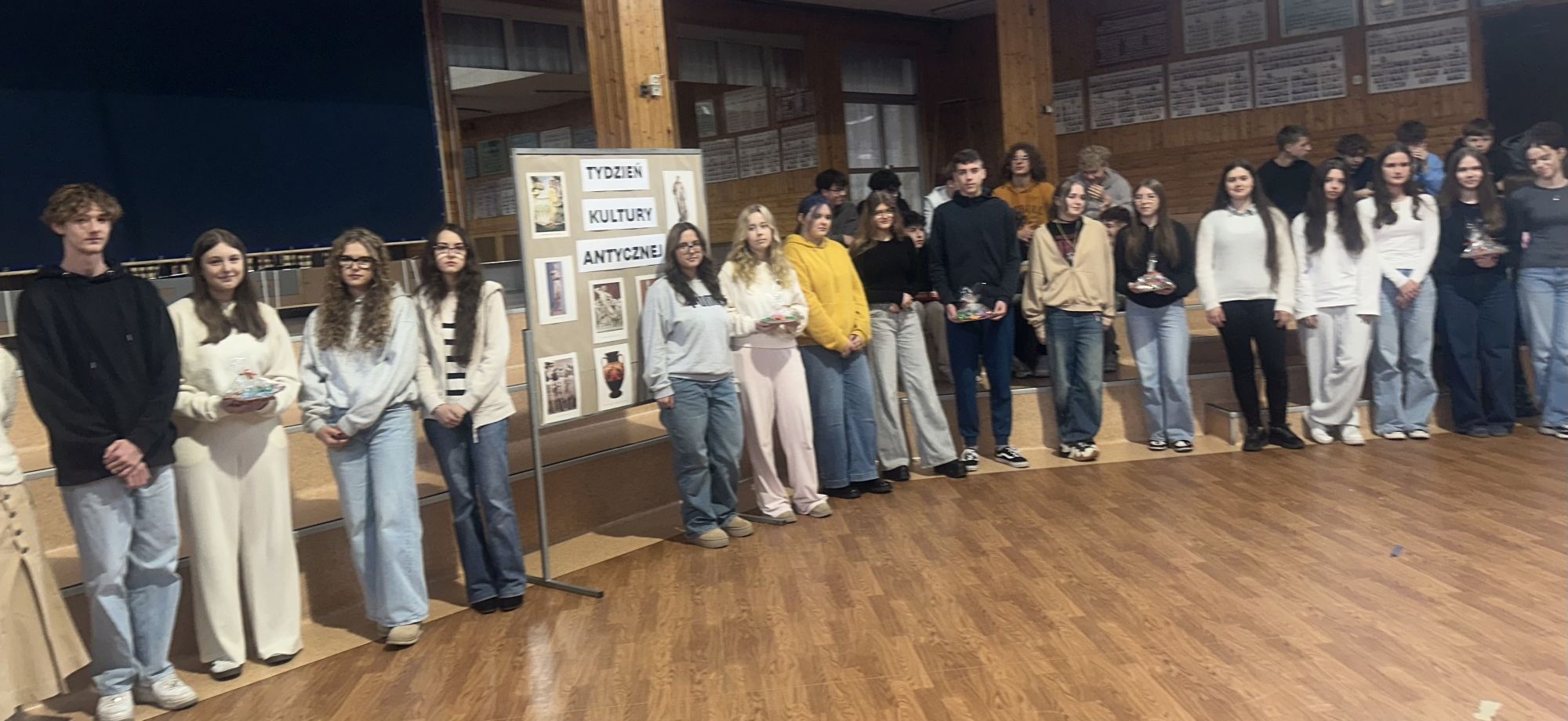 Dobiegł końca Tydzień Kultury Antycznej w naszej szkole, podczas którego uczniowie II Liceum Ogólnokształcącego uczestniczyli w wielu przedsięwzięciach propagujących dokonania intelektualne i cywilizacyjne starożytnych Greków i Rzymian. Z tradycji antycznej czerpiemy od wieków, zatem, doceniając wkład Starożytnych w rozwój współczesnej kultury, nauki i sztuki, zorganizowaliśmy inscenizacje mitów greckich, indywidualny konkurs mitologiczny oraz konkurs znajomości sentencji łacińskich. 17 października 2025r. dokonaliśmy podsumowania przeprowadzonych działań, które przyczyniły się do zgłębienia wiedzy w zakresie kultury antycznej, ale przede wszystkim pozwoliły dobrze się bawić i zintegrować w zespołach klasowych.
