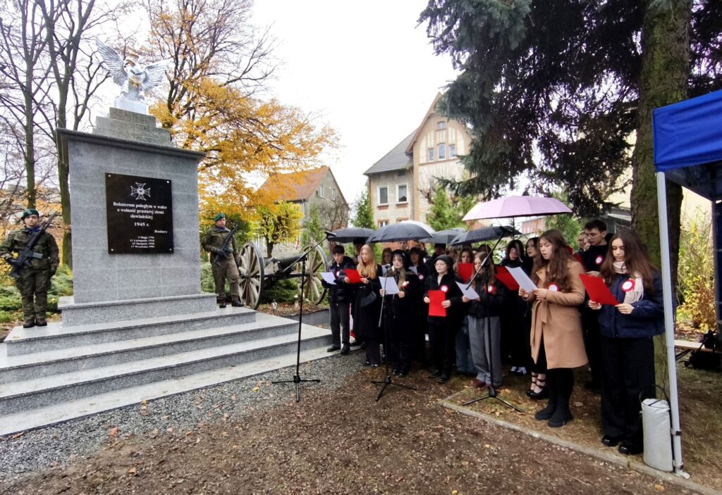 Kolejny już raz uczniowie naszej szkoły przygotowali oprawę artystyczną miejskich obchodów Narodowego Święta Niepodległości. I kolejny raz sprawdzili się w tej roli doskonale. Tym razem dołączyli do nich także absolwenci. Było pięknie, wzruszająco, patriotycznie. Wybrzmiał fragment Mickiewiczowskiego koncertu Jankiela, teksty Cypriana Norwida i Marka Grechuty ułożyły się w opowieść o ojczyźnie a melodie o „takim kraju”, w którym z „jarzębinowych dróg wstaje dzień” wprowadziły wyjątkową atmosferę. Całość uświetniło wykonanie pieśni patriotycznej, a końcowy utwór o tym, że „wolność kocham i rozumiem” był mocnym akordem inicjującym wspólne śpiewanie.