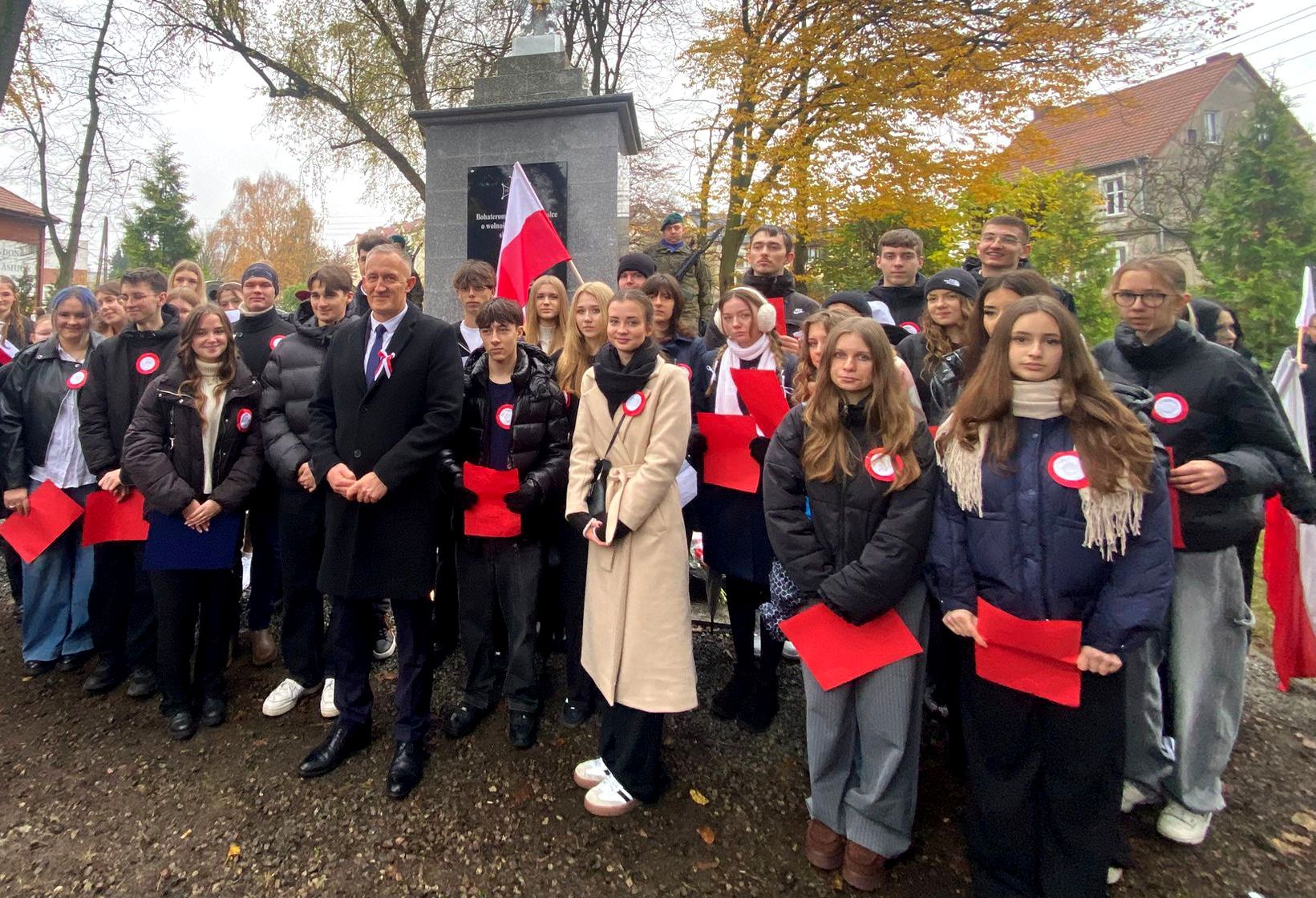 Kolejny już raz uczniowie naszej szkoły przygotowali oprawę artystyczną miejskich obchodów Narodowego Święta Niepodległości. I kolejny raz sprawdzili się w tej roli doskonale. Tym razem dołączyli do nich także absolwenci. Było pięknie, wzruszająco, patriotycznie. Wybrzmiał fragment Mickiewiczowskiego koncertu Jankiela, teksty Cypriana Norwida i Marka Grechuty ułożyły się w opowieść o ojczyźnie a melodie o „takim kraju”, w którym z „jarzębinowych dróg wstaje dzień” wprowadziły wyjątkową atmosferę. Całość uświetniło wykonanie pieśni patriotycznej, a końcowy utwór o tym, że „wolność kocham i rozumiem” był mocnym akordem inicjującym wspólne śpiewanie.