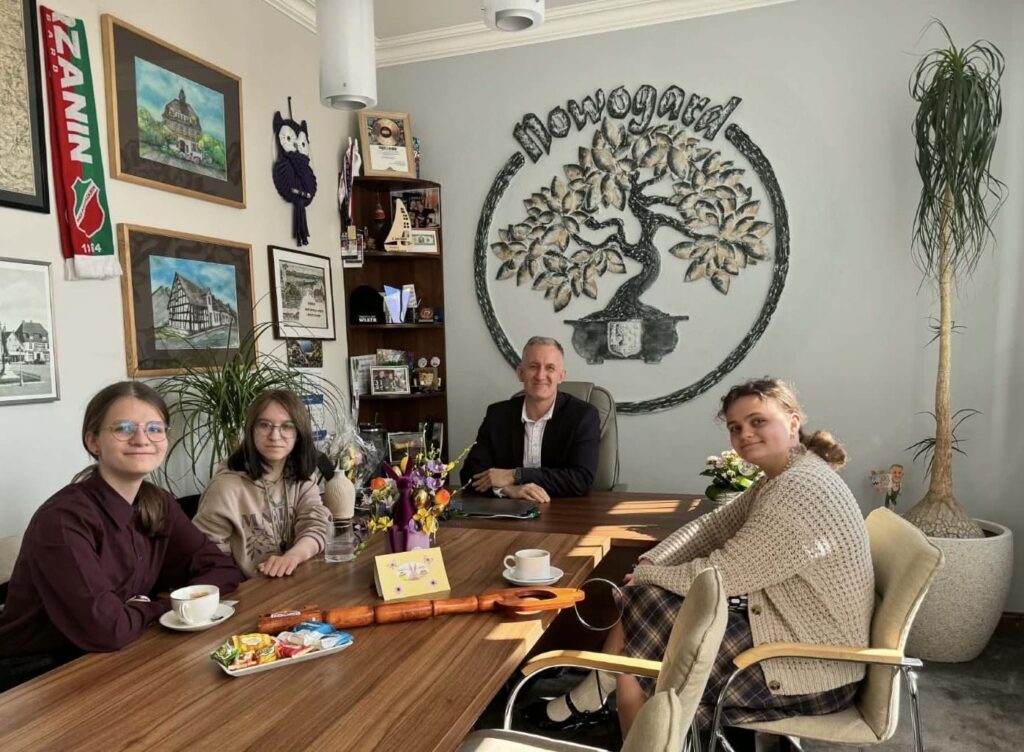 Działalność wolontariacka uczennic klasy III C naszego liceum w Przedszkolu Publicznym nr 3 w Nowogardzie została już przedstawiona na szkolnej stronie internetowej, jednak dzięki zaproszeniu Natalii, Julii i Basi na spotkanie z panem Michałem Wiatrem – Burmistrzem Nowogardu, szersze grono Nowogardzian mogło zapoznać się z przedsięwzięciem, które uczennice naszej szkoły realizują od września 2025r. Zajęcia czytelnicze dla przedszkolaków to wielka frajda dla dziewczyn, a jednocześnie radość dla dzieci, które czekają na wspólne czytanie i ciekawe rozmowy. Licealistki zdobywają nowe doświadczenia, a także wiedzę na temat funkcjonowania przedszkola, które jest miejscem bezpiecznym i przyjaznym dzieciom dzięki codziennej pracy pań nauczycielek i całego personelu przedszkolnego. Niezwykłą atmosferę tego miejsca znanego im z dzieciństwa tworzą ludzie, od których mogą się wiele nauczyć. Wrażeniami ze swojej działalności dziewczyny podzieliły się z Burmistrzem Nowogardu podczas spotkania w Ratuszu, na które zostały zaproszone 2 kwietnia br. Inicjatywę nastolatek docenił pan Michał Wiatr, zyskała ona również wiele pozytywnych opinii mieszkańców Nowogardu. Uznanie zawsze dodaje skrzydeł i energii do pracy, więc dziękujemy za wsparcie i działamy dalej!!!